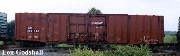 Lon caught this CR-stenciled former-Reading Company 50' boxcar still in its original Reading green, though RDG herald is showing through the worn paint. This was another of the BR50L class built in November 1972.