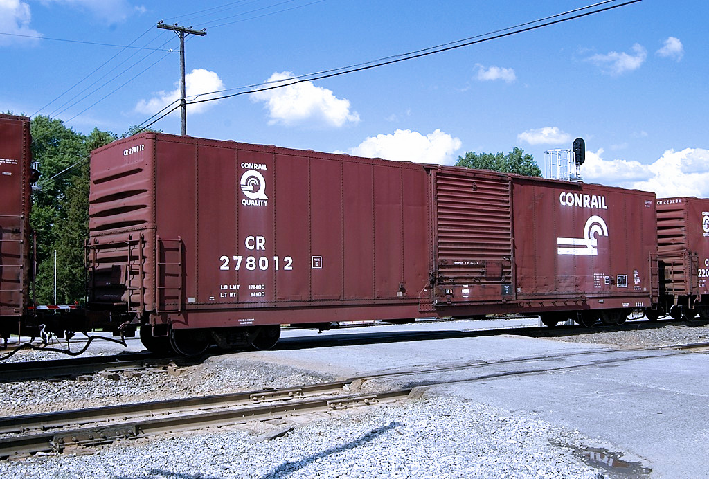 In 1984 at the Hollidaysburg Car Shops, Conrail aging Pennsylvania Railroad (later Penn Central) class X61F 60' boxcars into extended-height cars. Conrail placed this new B60D class into series CR 277801-277916.