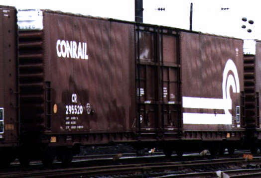 The X66 and X66A classes of 60' double-door boxcars were built by Penn Central in 1969 in the old Pennsylvania Railroad car shops in Altoona. The X66 cars had the same numbering on Conrail as they did on Penn Central. The X66A were renumbered into series CR 283000-283029. CR 283000 (ex-PC PC 220835) has been repainted into Conrail Quality scheme.)