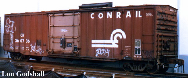 In the 1990's, Conrail acquired a group of twenty Evans 53' double plug-door boxcars from Evans Railcar Leasing Company (USLX). Conrail did quick stencil job on them and placed them in series CR 368600-368619.