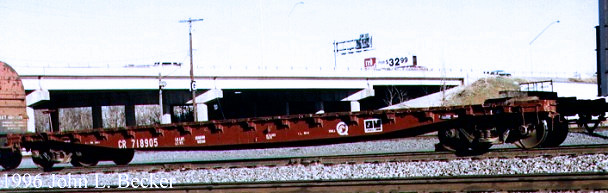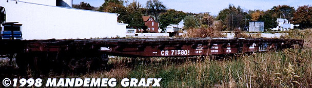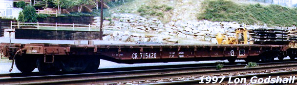 CR 715801 is another F41 class flatcar with a cast steel frame and wooden deck.