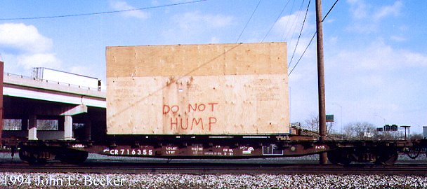 We have no idea what was inside the plywood container on top of CR 716355, but hopefully no one sent it over a hump yard. The F41D class seem to be in their own series of CR 716339-716387.