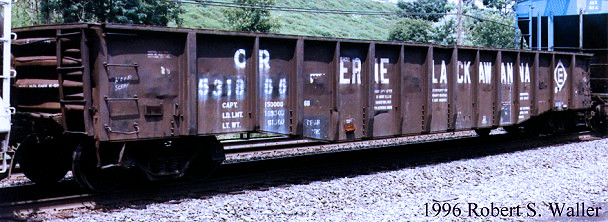 Former Erie Lackawanna (DL&W) 52'6" gondola built by Greenville and sitting on the Altoona scrapline.