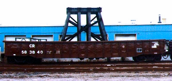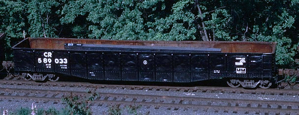 CR 589015 is from a group of former Norfolk & Western gondolas that had been built in 1980 and purchased secondhand by Conrail. Conrail simply applied CR stencils and numbers to these gondola, which N&W had painted black.