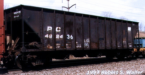 CR 472294 is a 12-Panel triple hopper. It began in Pennsylvania Railroad paint, then went to Penn Central paint, and finally to Conrail paint.