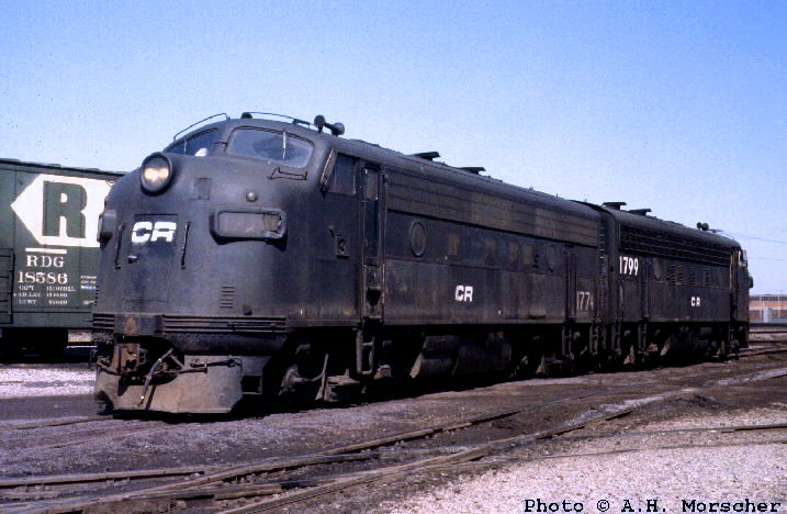 A trio of F-units yard their train. Notice the white border around 1779's right number board.