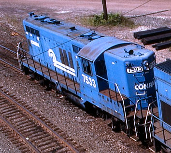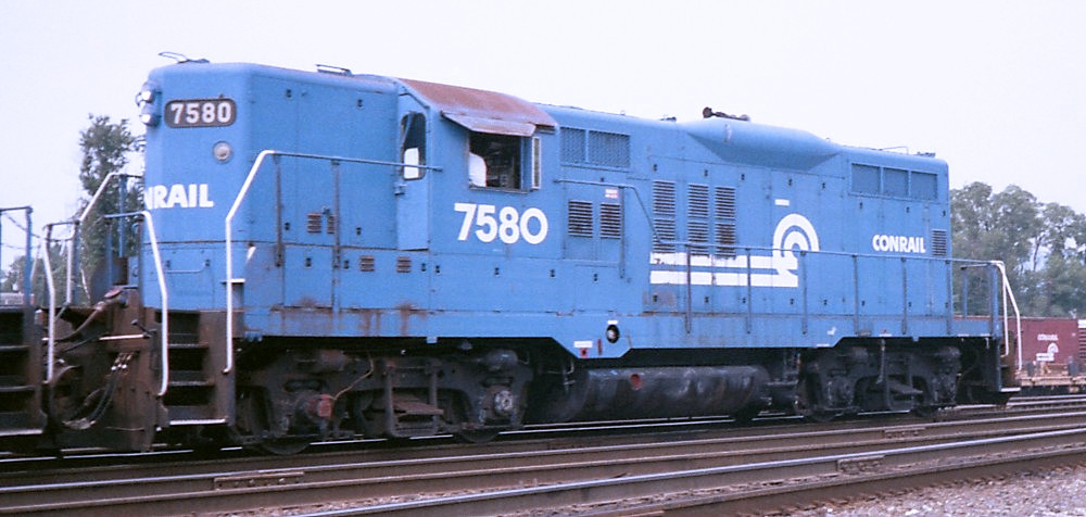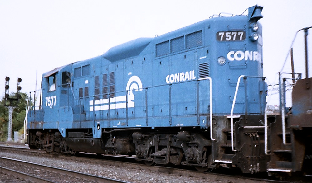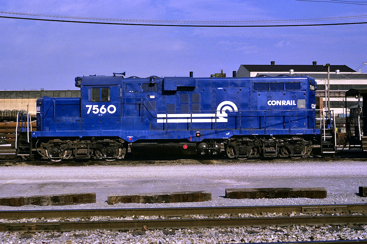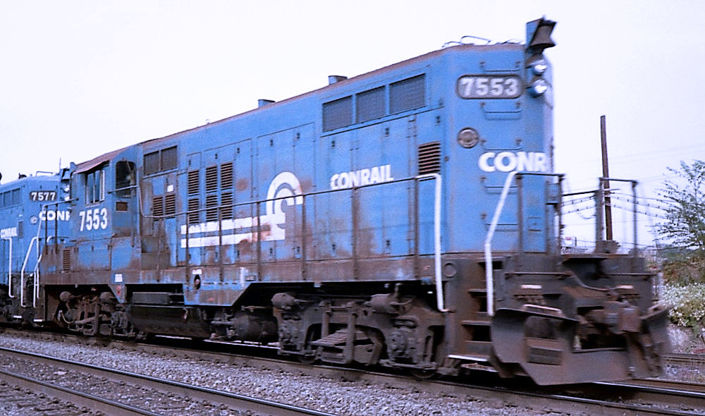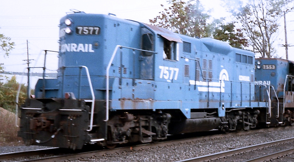 CR 7563 began as PC 7450 and was outshopped on October 13, 1976 a a GP10 with chopped nose, paper air filters, and complete repaint into Conrail blue.