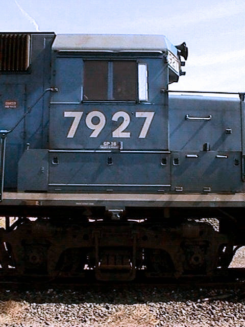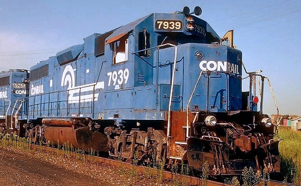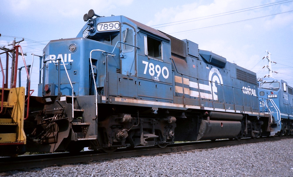 It looks as if the 7888 had never even gotten a CR stencil over its logos nor had them painted out, though Conrail did slap on a blue maintenance assignment sticker onto the cab.