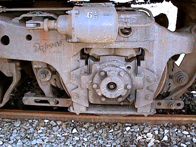 Close-up of trucks.