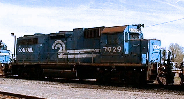 Unlike other railroads that liked to rebuild and tweak their locomotives to extend their lives or improve performance, Conrail never seemed to have that luxury. During the 1980's, Conrail focused more on retiring its aged fleet of odd-ball predecessor locomotives and buying newer models. In 1984, however, Conrail briefly experimented with rebuilding their massive fleet of GP35's into more modernized GP38's. The program produced only one locomotive: CR 7635. For more information on this locomotive and the rebuild program, see the GP38 Prototype Information page. Here in 1990, CR 7635 is still painted in Conrail's standard scheme from the 1980's.