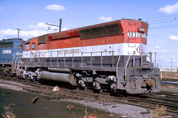 It's almost three months into Conrail and EL 3632 is still in its EL Bicentennial colors.